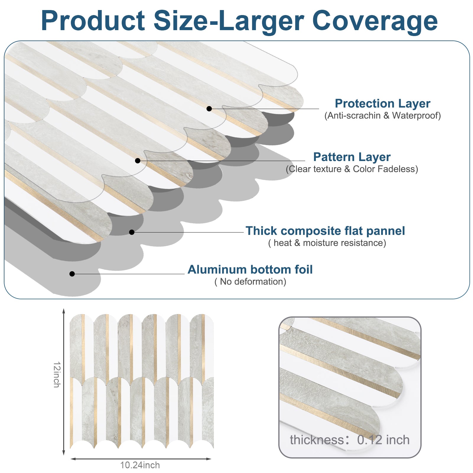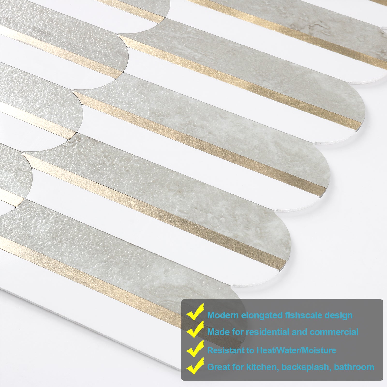 • √Impact Resistant and Durable: These fish scale peel and stick tiles are perfect for renters. With a premium self-adhesive backplash and a 4-layer design of PVC composite laminate, they are both affordable and durable compared to other plastic tiles.
