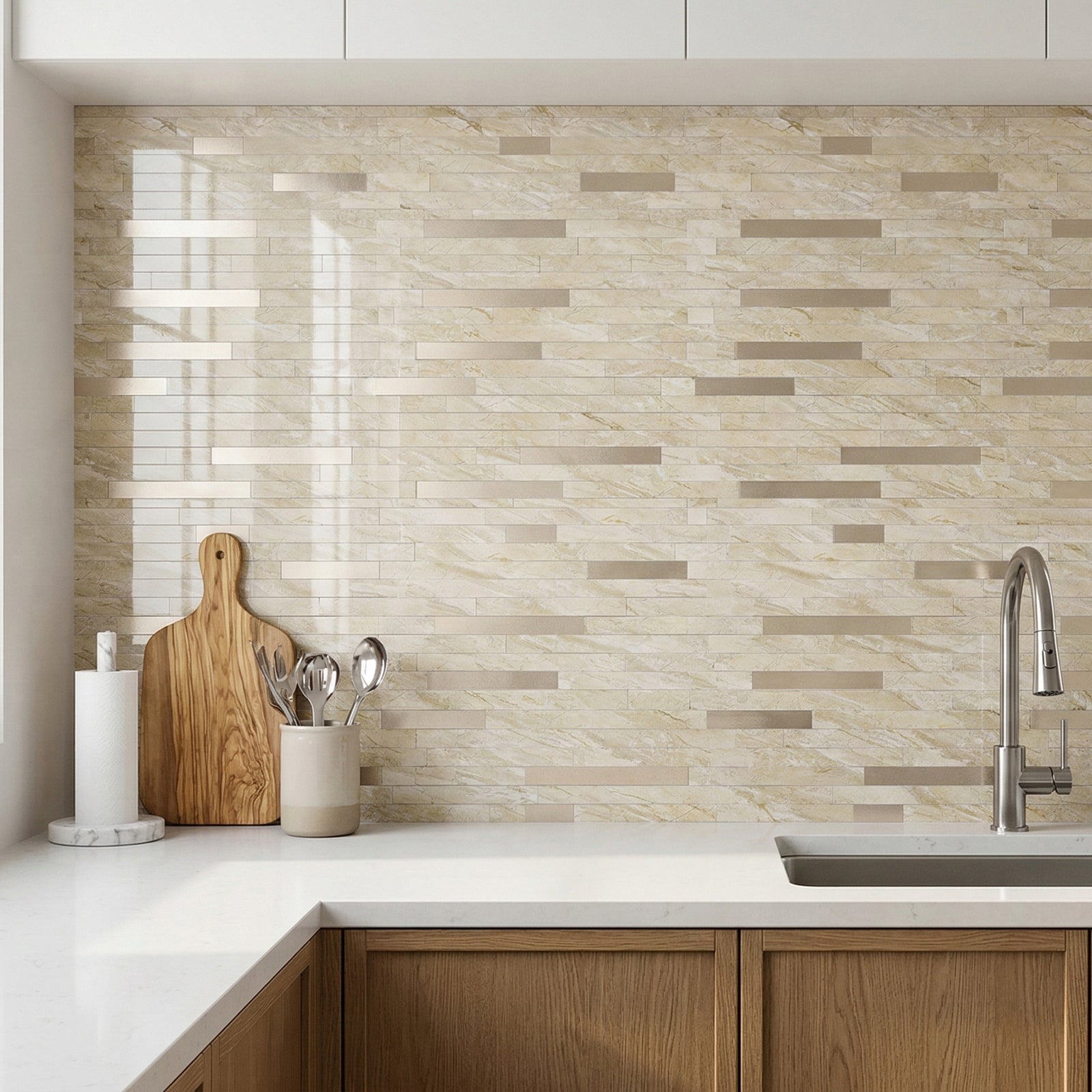 Enhance Your Home's Aesthetic with a High-Quality Polished Beige Peel and Stick Backsplash