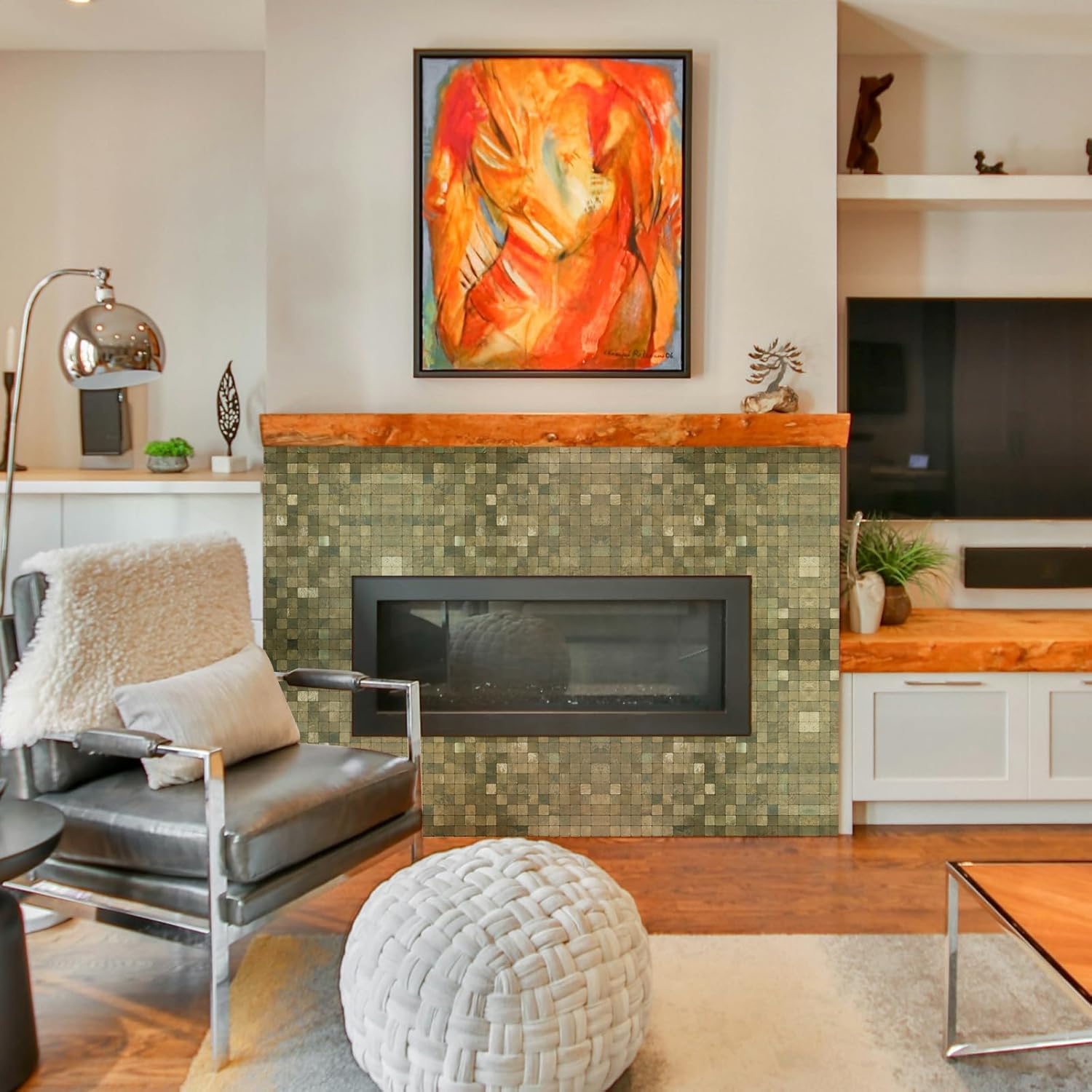 A1: Yes. Our adhesive wall tiles are heat-resistant. In long-lasting usage, we recommended keeping 12'' away from the center of the stove and fireplace.