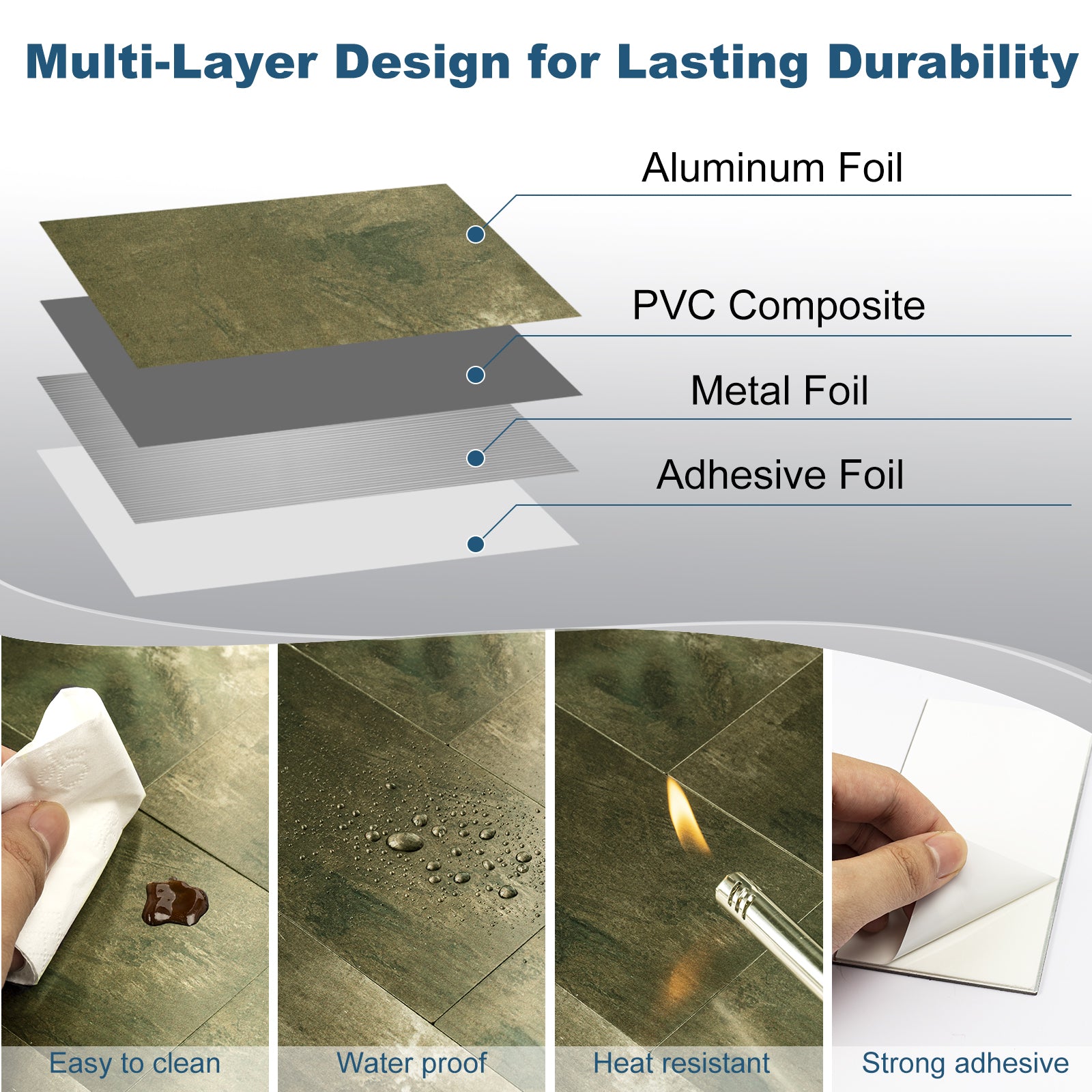 - Realistic Metallic Finish: Modern metallic texture brings an elegant industrial style to any space — ideal for kitchen backsplash, bathroom walls, and laundry rooms.