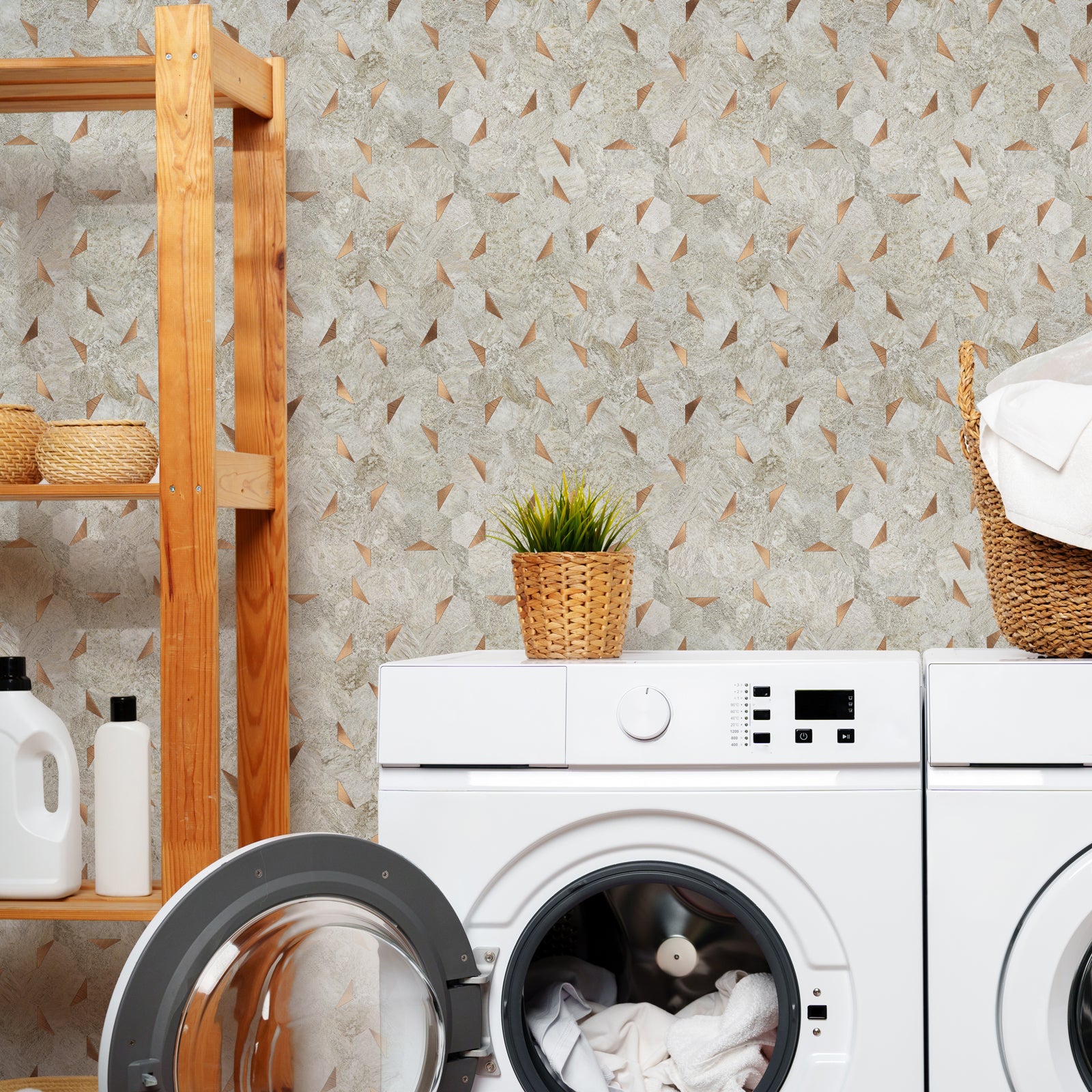 hexagon peel and stick tile for laundry room