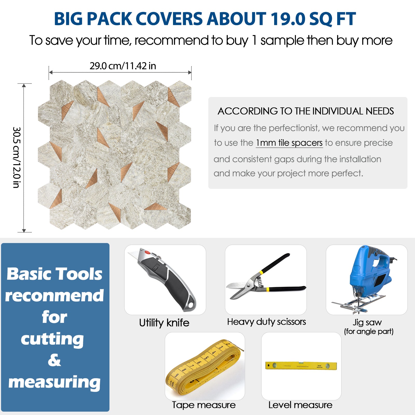 hexagon tile size